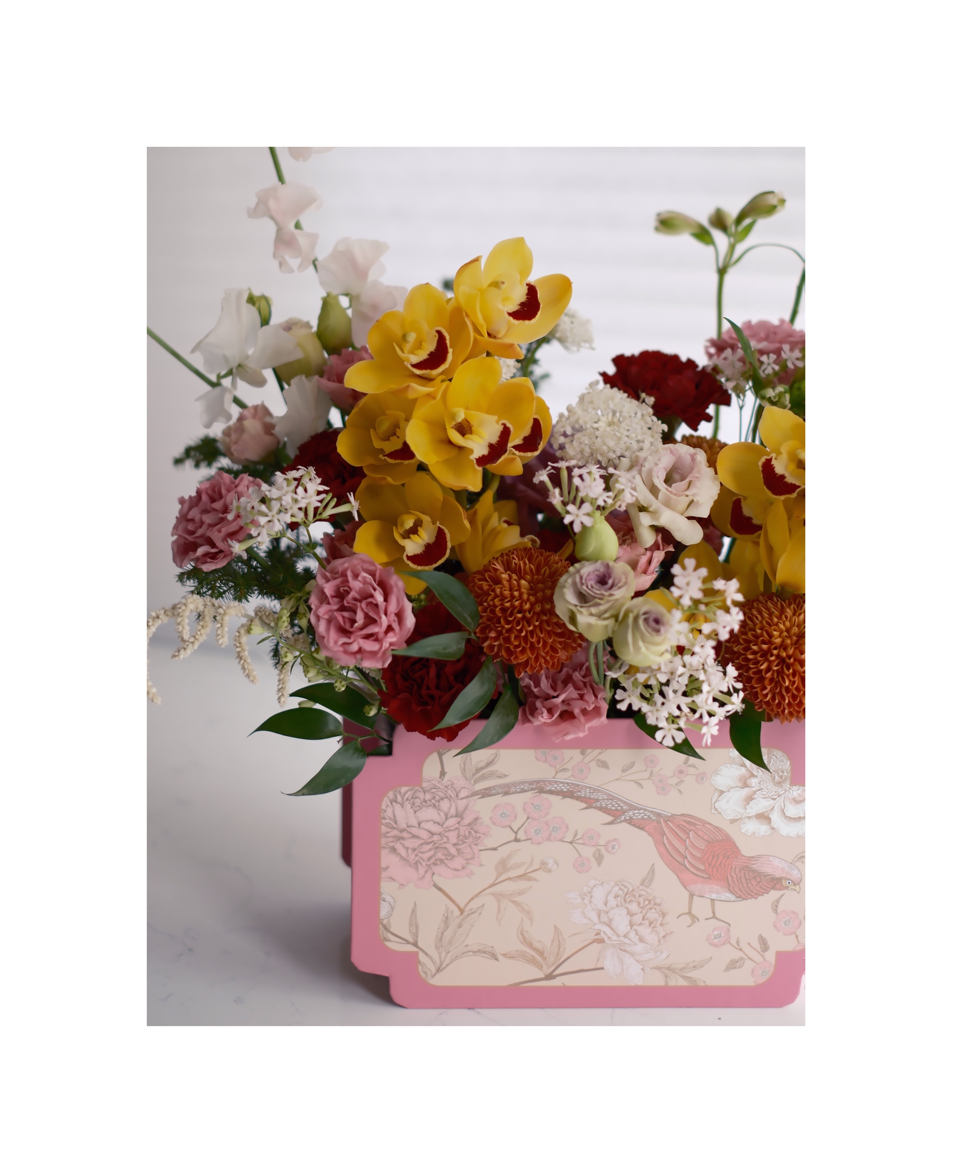 主要花材為牡丹菊、荷蘭東亞蘭,